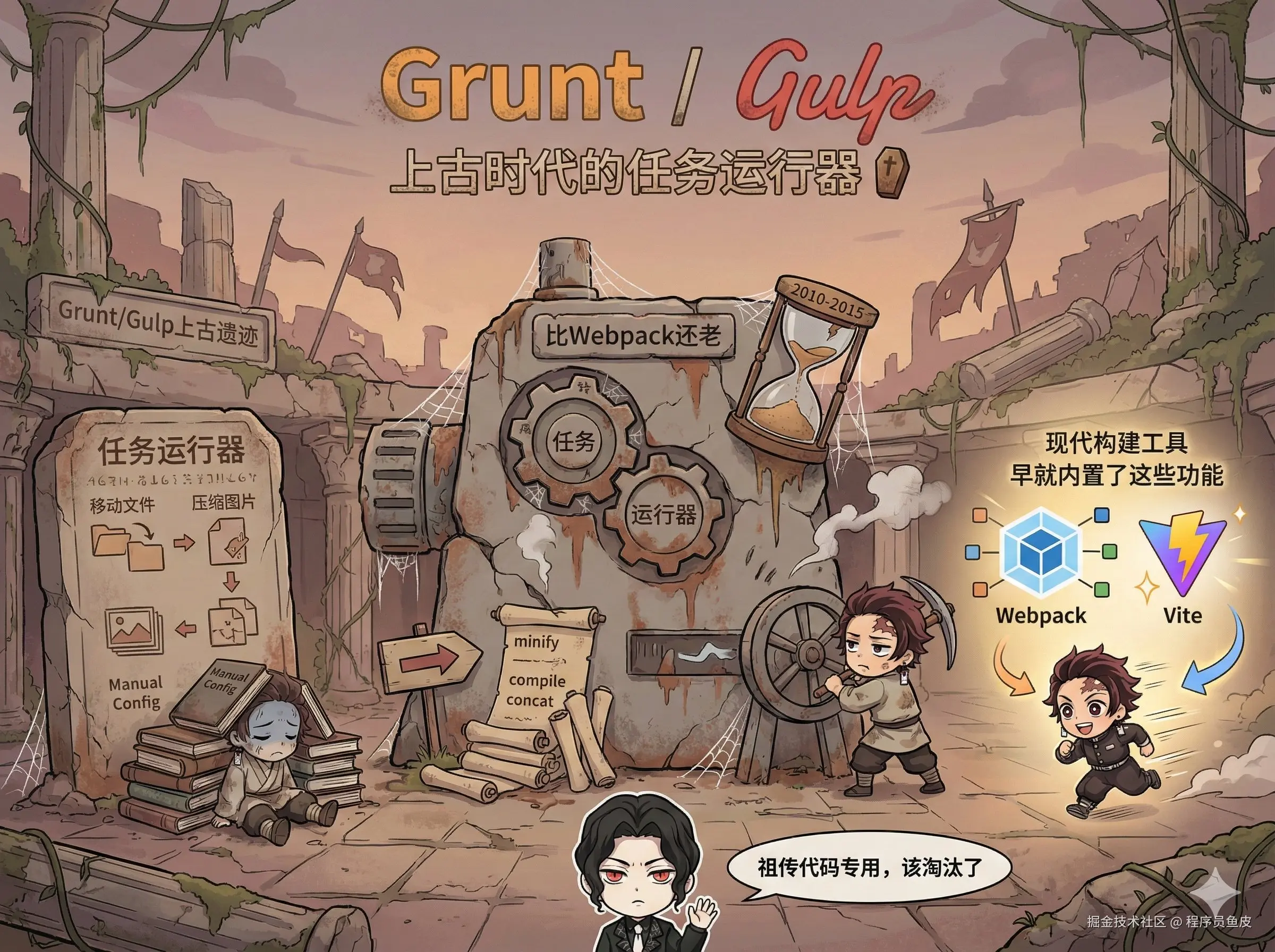 但是现代构建工具早就内置了这些功能,还在用这俩的项目,估计都是几代员工的祖传代码了,给到 拉中拉!