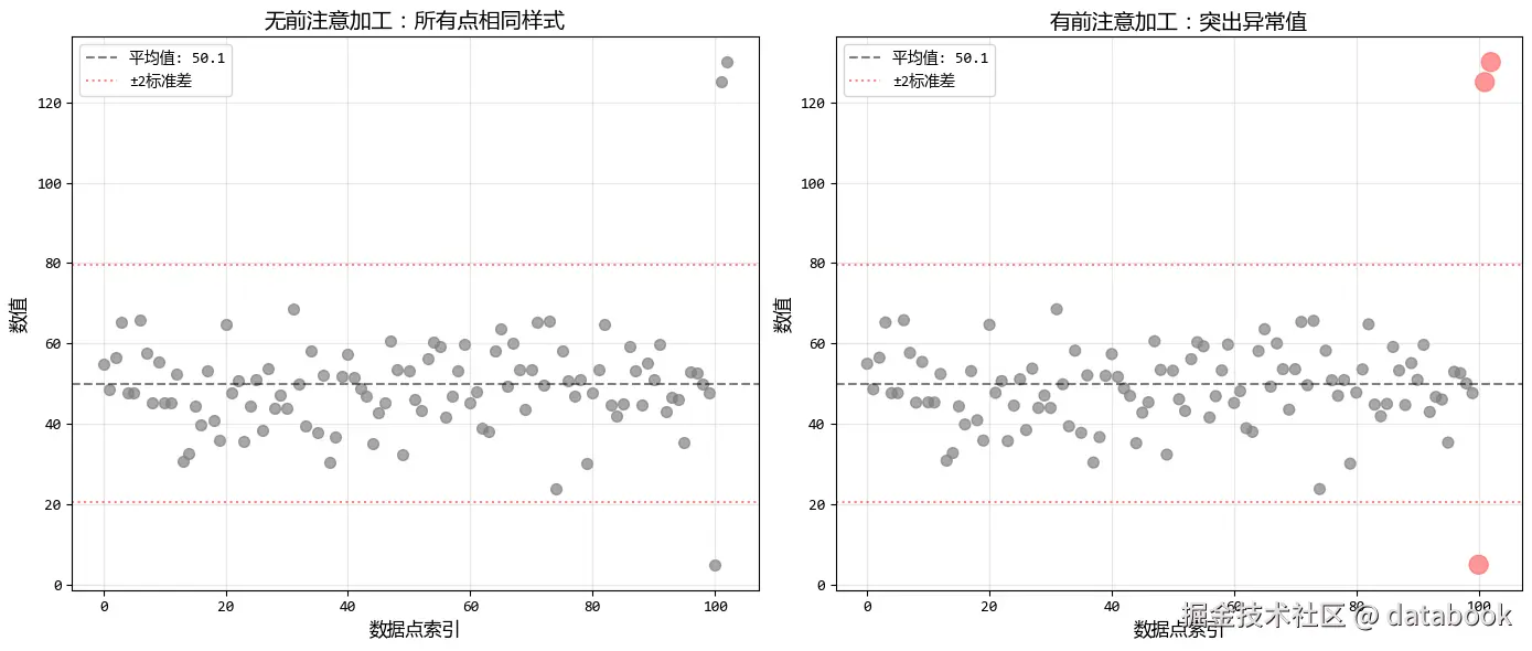 前注意加工的好处:就像在平静湖面上标记出涟漪的起源,异常值不再隐藏在数据海洋中,而是成为分析的重点。