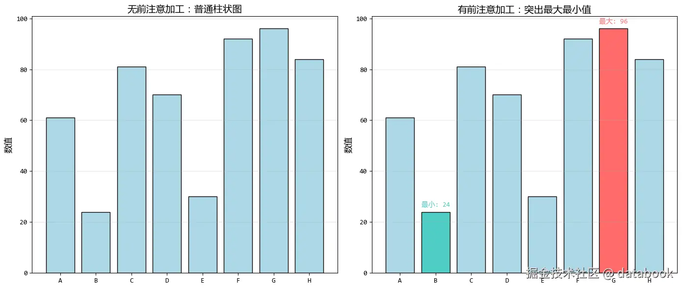 前注意加工的好处:就像在人群中为重要人物戴上特别的帽子,读者无需费力寻找就能立即识别关键数据点。