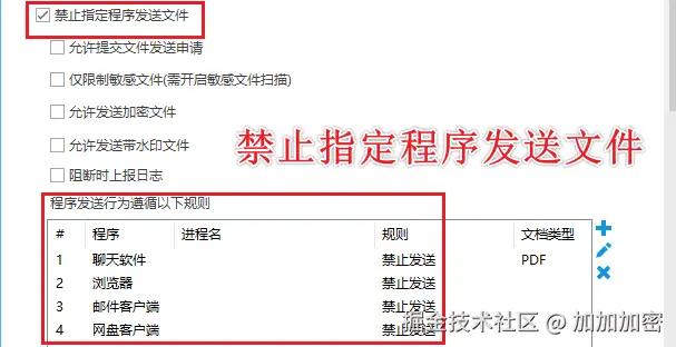 可以限制员工通过聊天软件、邮件客户端、网盘等常用程序外发文件,避免员工随意将核心数据发送给外部人员,堵住数据泄露的重要漏洞。