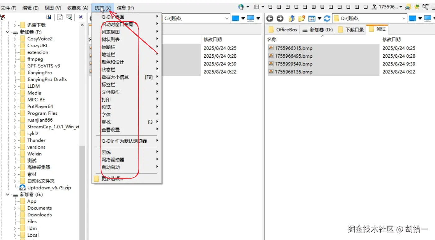4、选项这里,你可以对界面的布局,列表、地址栏字体等一系列做出调整
