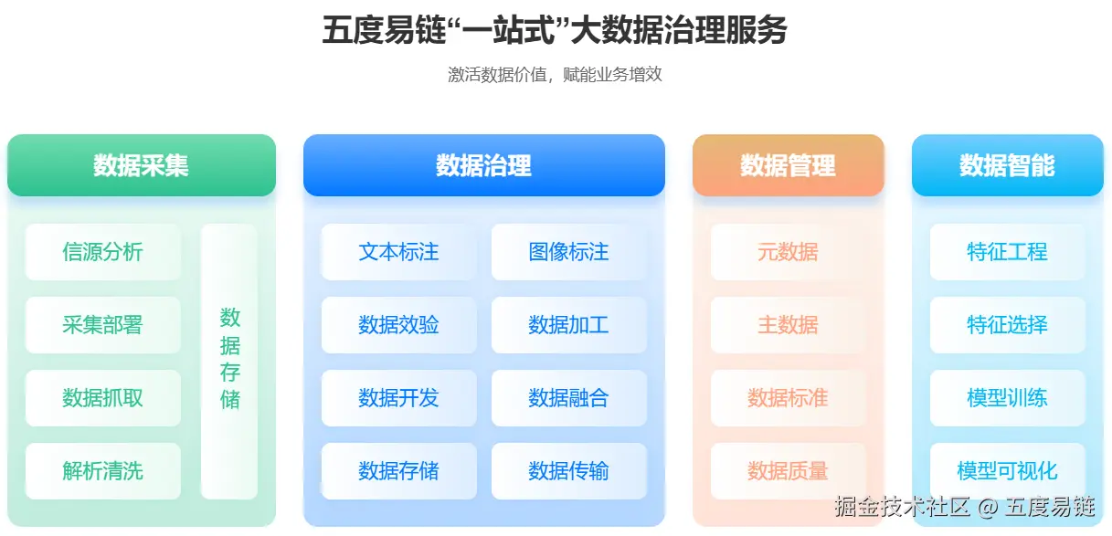 作为大数据治理领域的专业服务商,五度易链的核心优势在于“技术深度融合+服务全流程覆盖+行业定制化适配”: