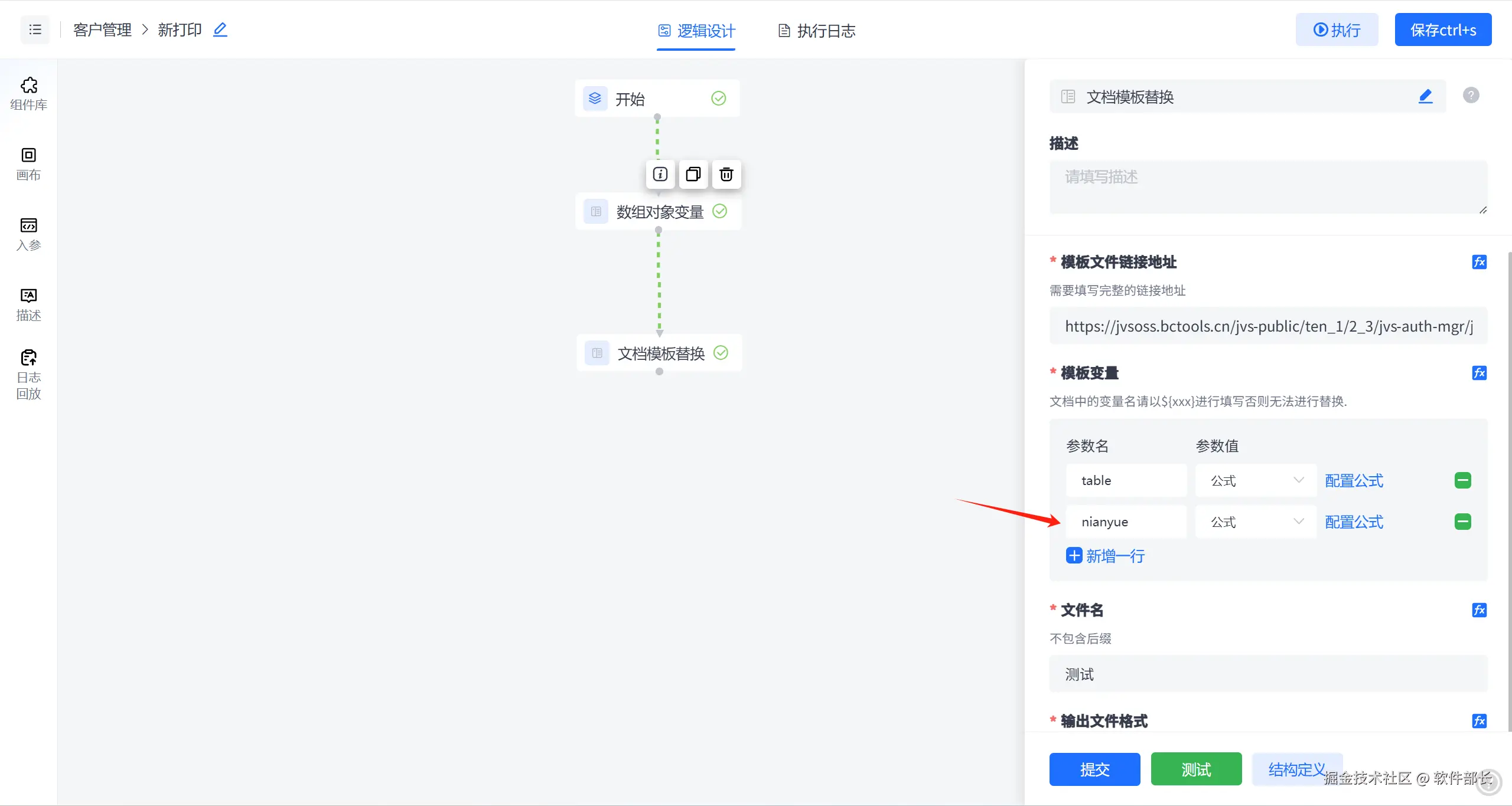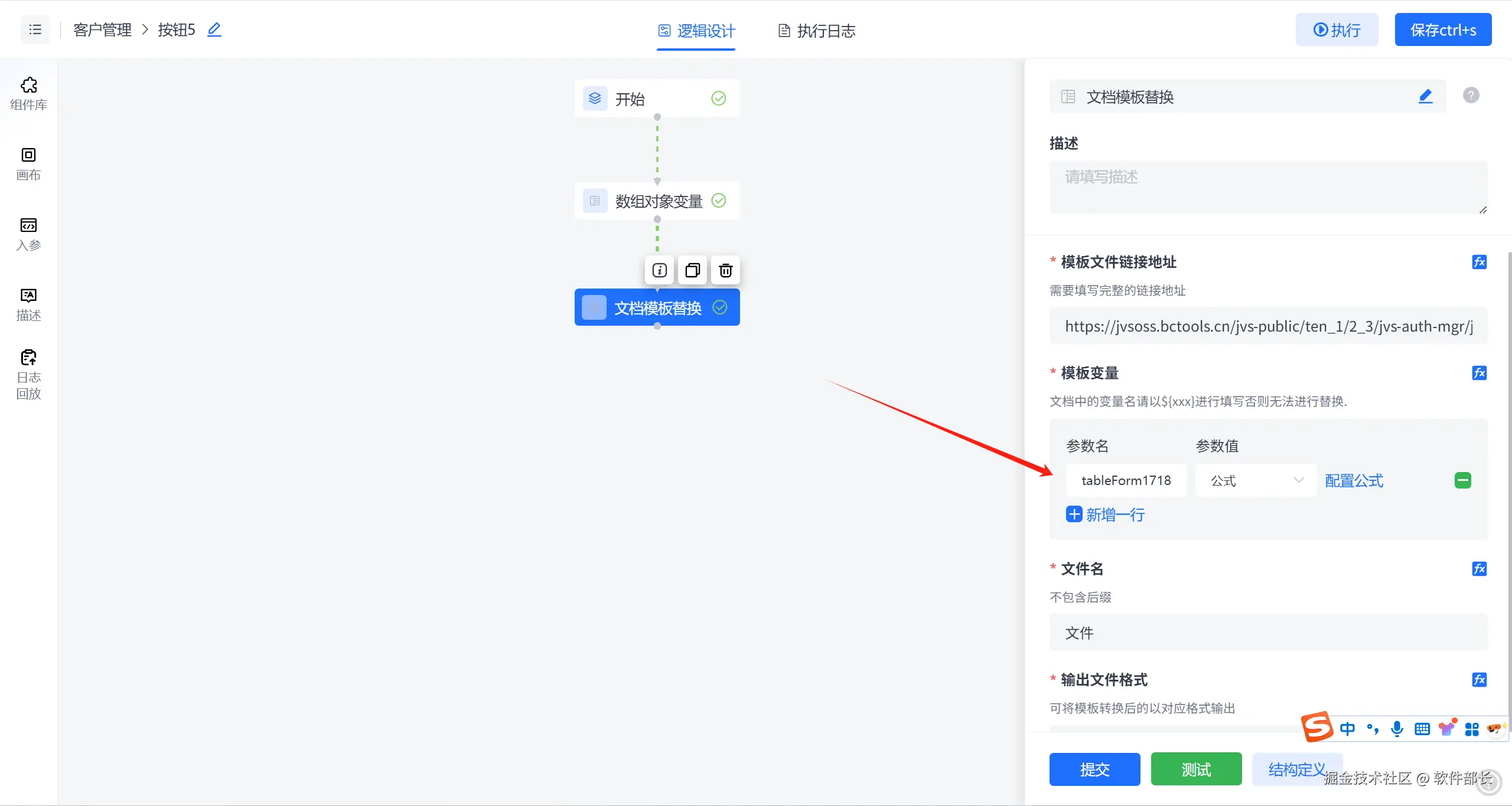 进入逻辑设计器中,拖取文档模板替换组件。