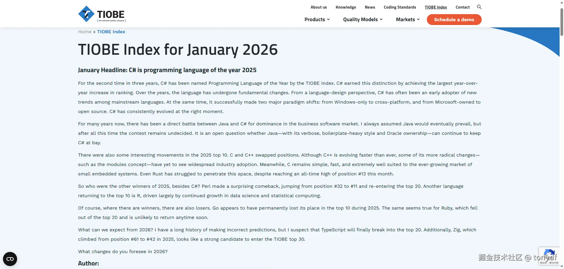 附一条小插曲,截止到笔者发文,刚刚看到C#获得了2025年年度编程语言,多年来,C#经历了根本性的变革。从语言设计的角度来看,C#常常率先采纳主流语言中的新趋势。与此同时,它成功完成了两次重大范式转变:从仅限Windows到跨平台,以及从微软专有到开源。C#始终能在恰当的时机实现与时俱进的演进。