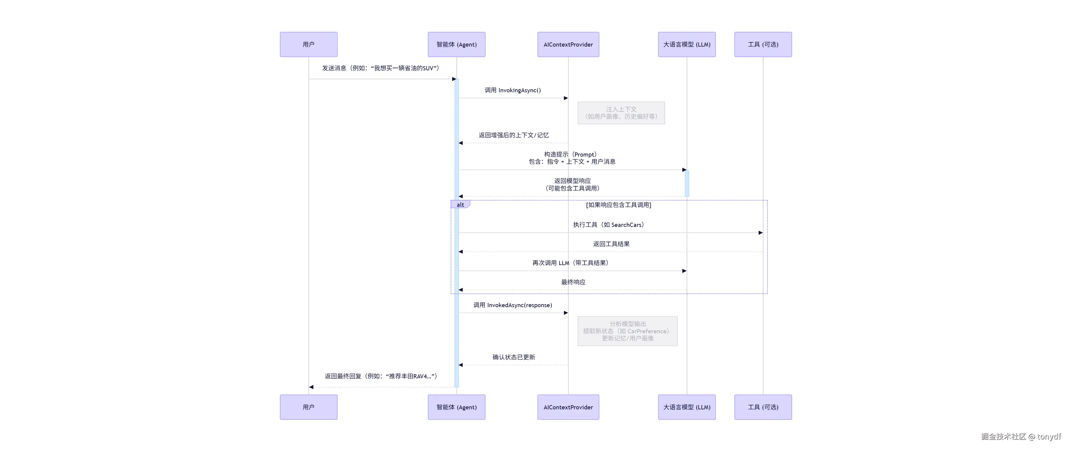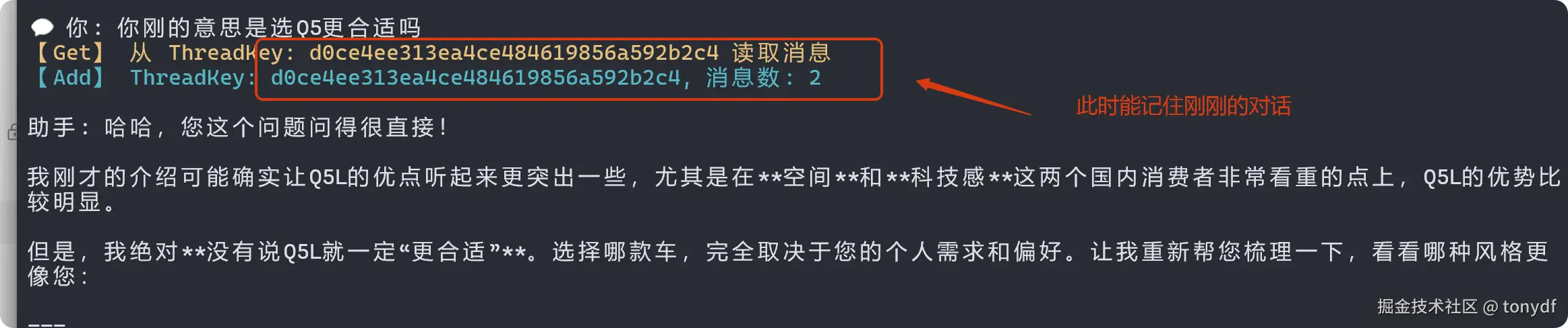 简单说明一下,这个案例,前半部分的代码是核心,重载了InvokingAsync和InvokedAsync两个方法,分别在调用模型前,和调用模型后做一些业务相关的操作,比如这个案例是根据用户输入,提炼一个用户画像,有多少预算,倾向买什么车等。