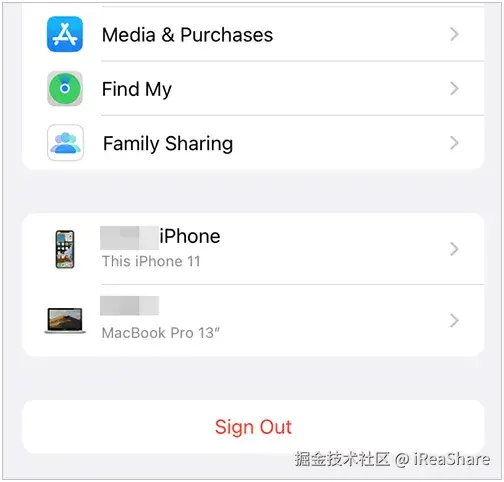 打开 “设置”>“ [您的姓名] ”>“媒体和购买记录”,然后点击“退出登录”。这样可以确保新用户无法访问您的 iCloud 数据,包括照片、联系人和备份。