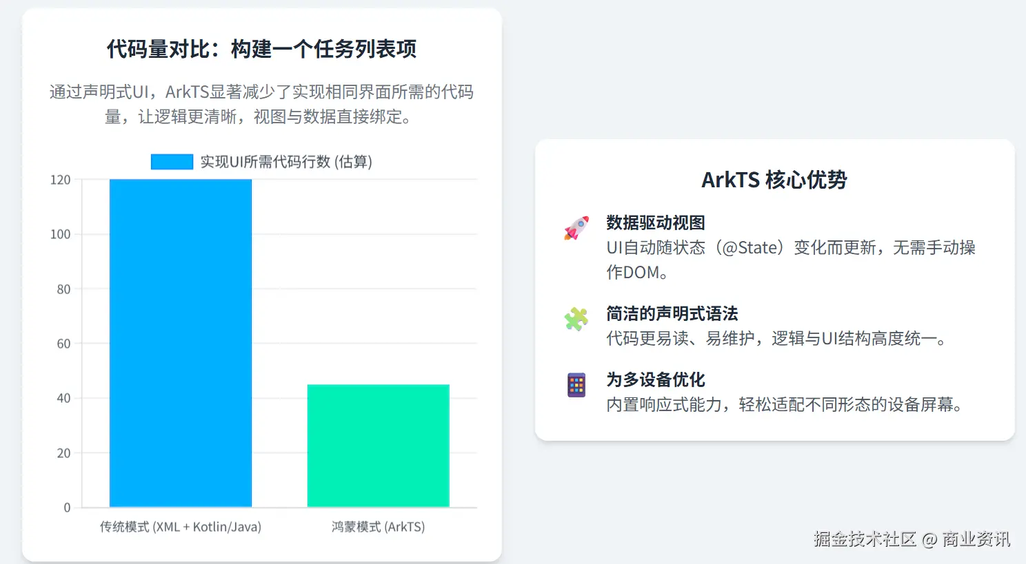 那一刻,我体会到了 ArkTS 的优雅:数据驱动视图,逻辑和 UI 融合,代码量锐减。它不是对某个现有框架的简单模仿,而是针对多设备 UI 特性进行了优化。但更重要的,这只是一个开始。
