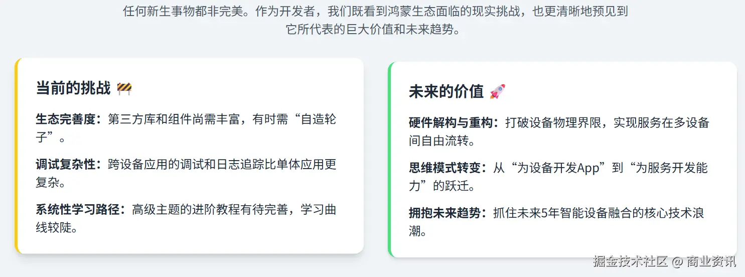 回顾这几年从 “鸿蒙小白” 到 “深度实践者” 的经历,我的心声是发自肺腑的,不谈任何华丽的比喻,只谈开发者需要面对的现实。