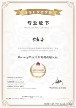 现在,我经常会回到 "鸿蒙" 的社区论坛,回答新手的问题。看到他们问的问题,就像看到当初的自己,而分享经验的过程,也让我对技术有了更深刻的理解。同时通过了 HarmonyOS 的高级认证。