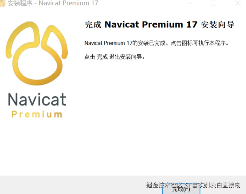 7.安装完成后,务必不要打开 Navicat 17,直接关闭提示窗口(关键步骤,避免🔑🔒失败)