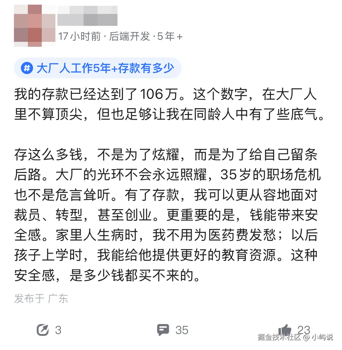存款讨论区里,有网友点出关键:行业与平台的差异巨大。 例如,高科技领域人才的薪资,可达当地最低工资标准的5-15倍甚至更多。选对赛道,确实是实现存款积累的重要一步。 正如我们之前分享过的案例,在互联网大厂工作数年,存款达到百万级别并非遥不可及。