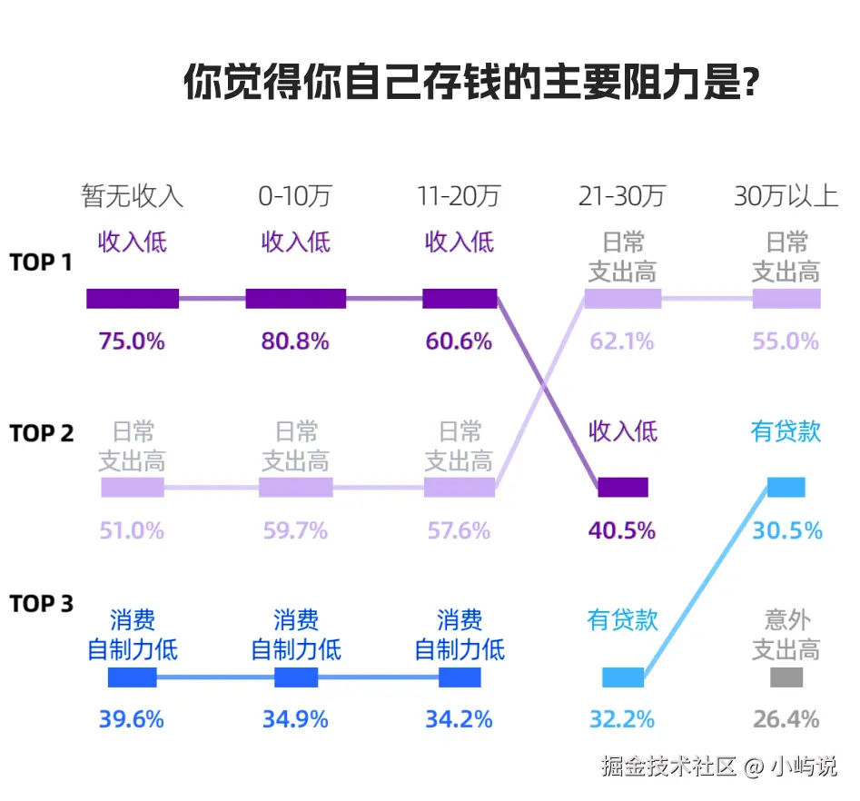 对于许多人来说,存钱不易;但对高薪行业从业者而言,存款更多是收入提升的自然结果。年薪50万存10万,与年薪15万存10万,难度截然不同。DT财经的调研也证实,在存款不足20万的人群中,“收入低”是最主要的阻力。