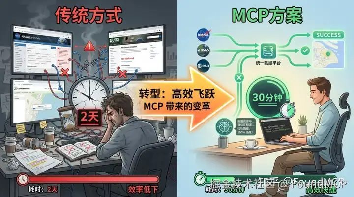 需要从NASA、USGS、ESA等94+机构网站手动爬取数据。每个平台格式不同、接口各异,注册账号和熟悉API就要半天。 - 格式不统一,转换成本高