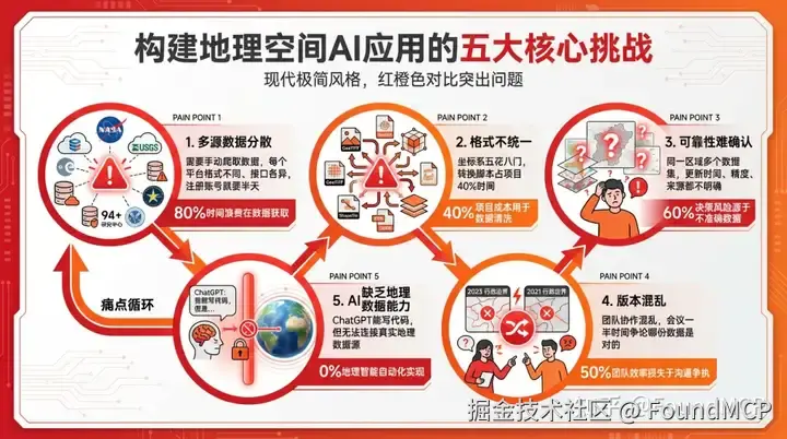 开发者构建地理空间AI应用时,面临五大核心痛点: