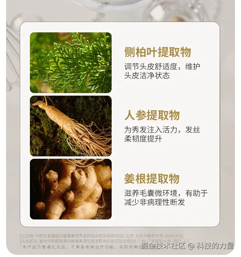 成分科学性拉满:核心植物成分均有明确功效指向,何首乌提取物激活毛囊,侧柏叶提取物控油净肤,人参叶提取物强韧发丝,姜根提取物滋养毛囊微环境,四种植物成分形成 “控油 - 防脱 - 修护” 的科学体系,没有多余的无效添加。而且它标注了植物成分的萃取方式 —— 低温提取,能保留 90% 的活性成分,这是很多纯植物配方洗发水都做不到的细节,也是其效果突出的关键。全程 0 硅油、0 硫酸盐、无合成防腐剂,纯植物配方温和不刺激,pH 值 5.5 贴合头皮环境。