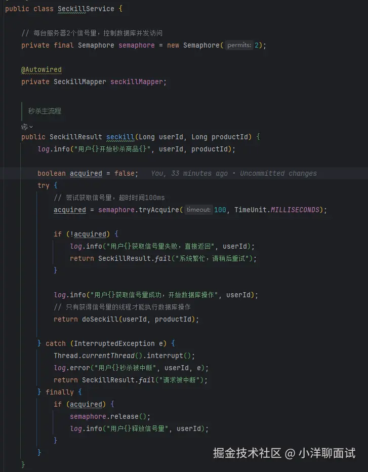 - semaphore.tryAcquire()非阻塞获取信号量,避免用户长时间等待