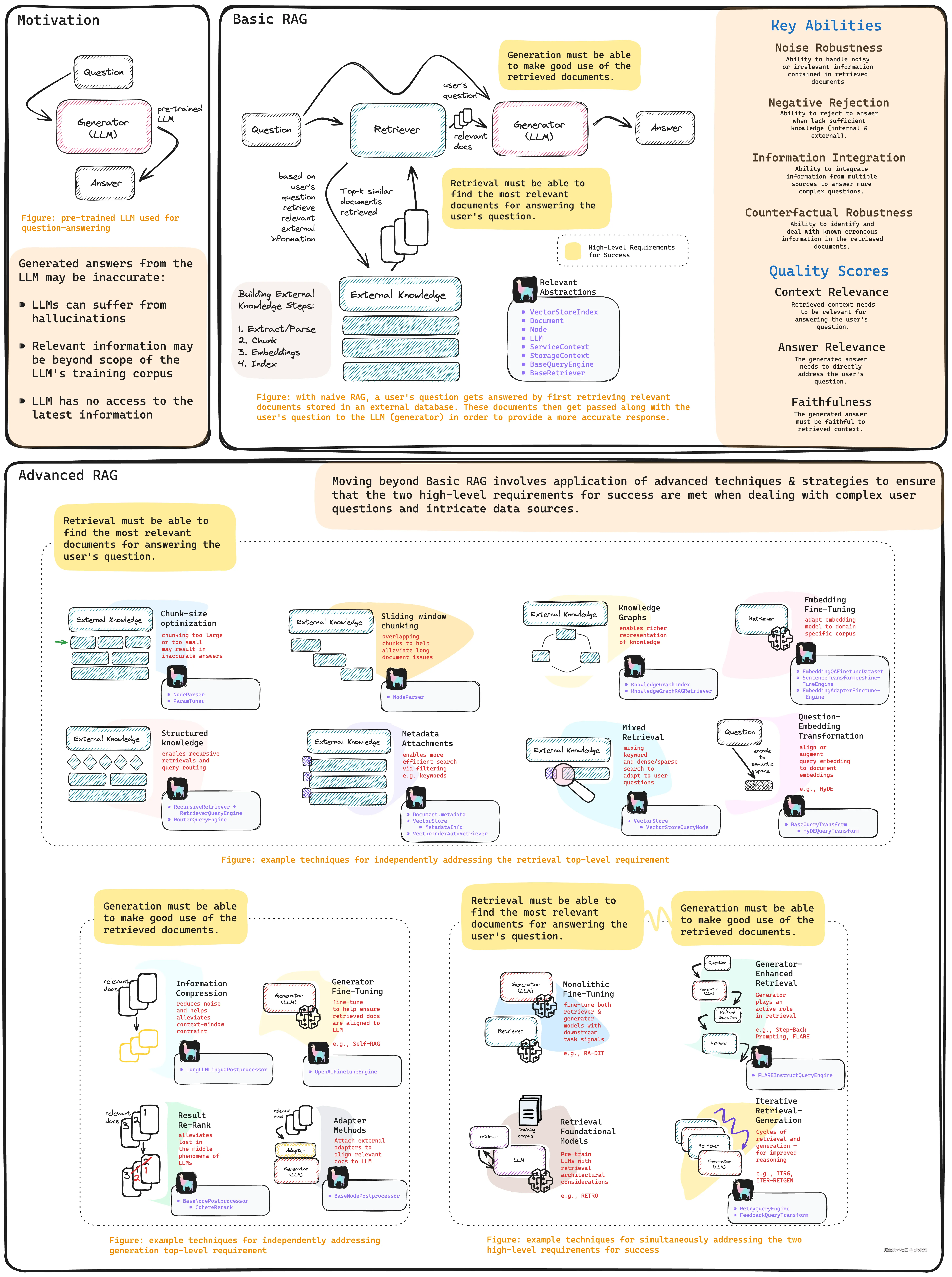 这篇综述及LlamaIndex的实践指南提供了一个清晰的心理模型:构建高级RAG系统就是围绕“精准检索”和“有效生成”这两个核心,有针对性地选择和实施一系列先进技术(包括独立优化任一环节或协同优化两者),并通过系统的评估来持续改进。