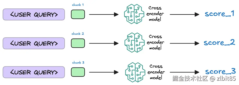 重排序使用交叉编码器,深度分析查询与每个知识块的交互关系,并为每个片段打出精确的相关性分数,将最契合的内容置前。这一步能有效过滤噪声,为后续生成提供更精准的依据。