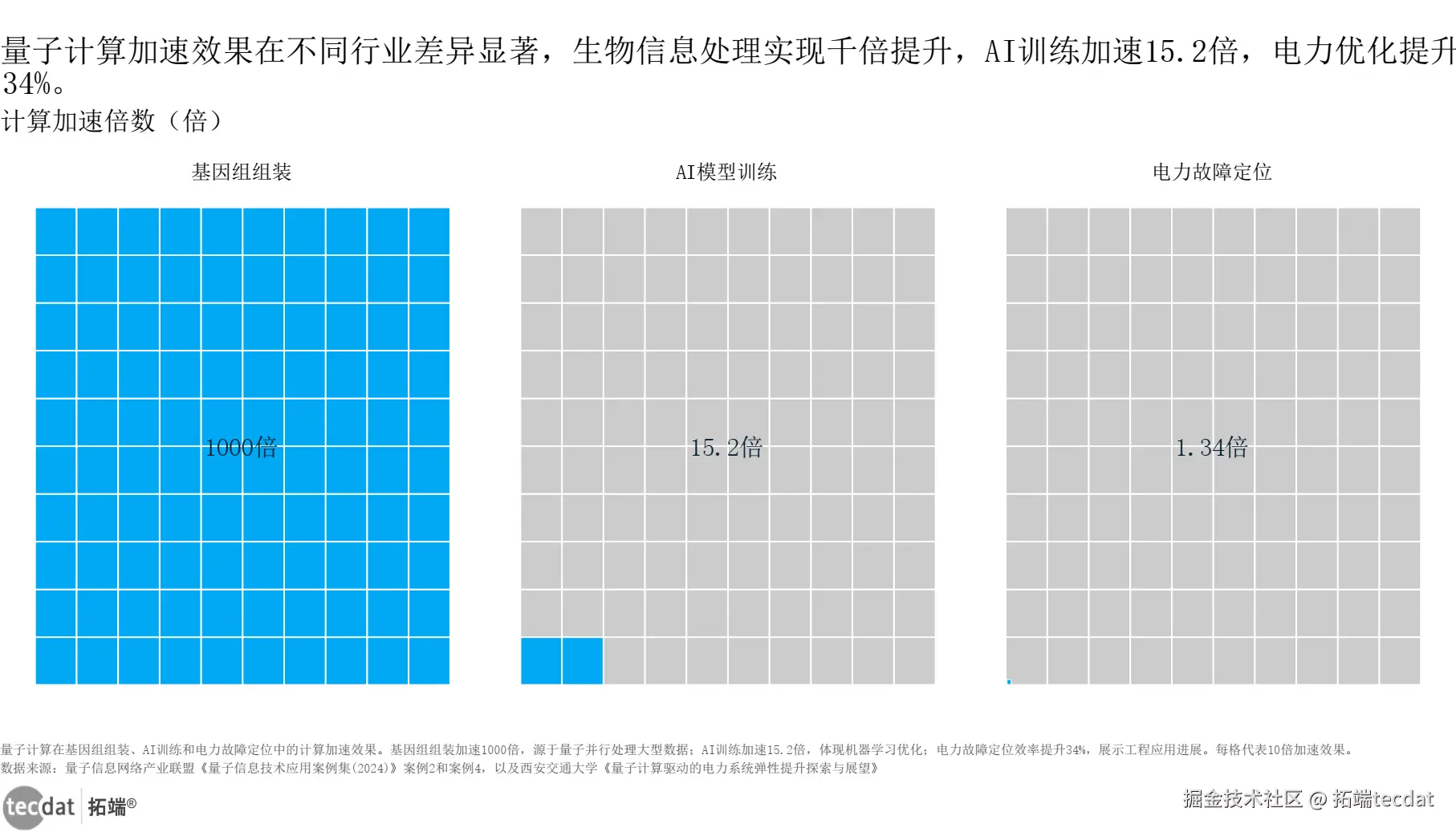 3秒解读:基因组组装加速1000倍,美国已应用于生物医药企业的新药研发;AI模型训练加速15.2倍,美国谷歌、微软已用于大模型优化;电力故障定位加速1.34倍,中国仅在个别电力企业试点,应用范围有限。