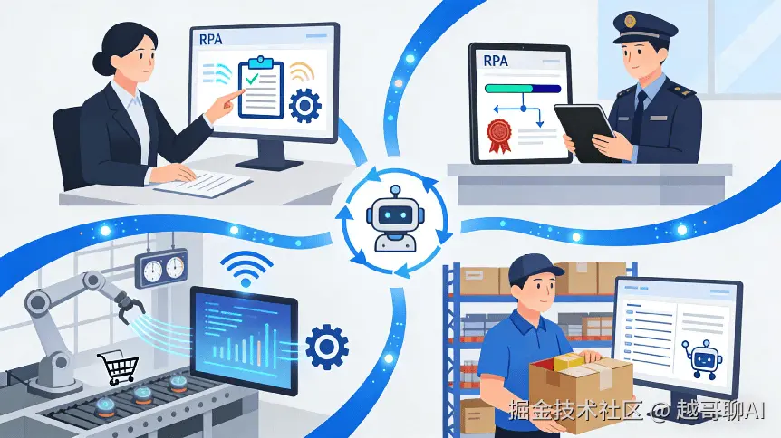 盘点完产品,再说说RPA的实际应用场景。现在RPA已经渗透到各个行业,其中金融、政务、制造、零售是应用最广泛的领域。了解这些场景,能帮助你更好地判断自己的企业是否需要RPA。