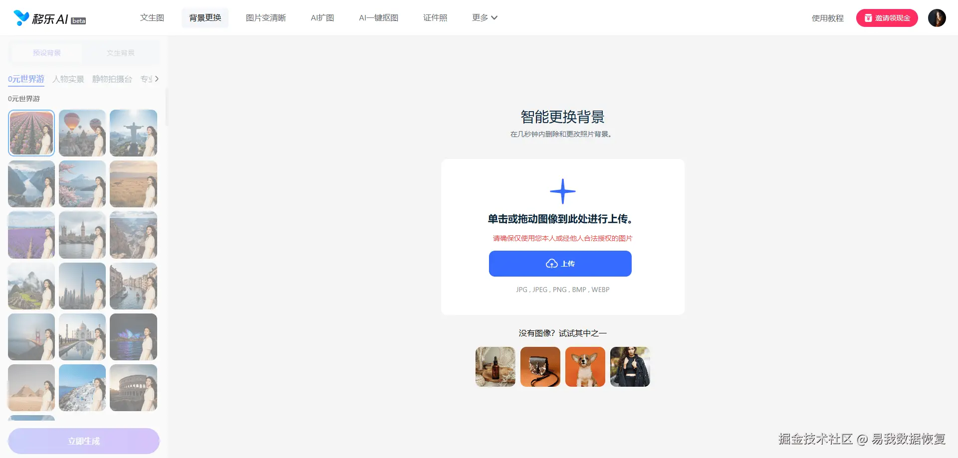 在日常工作和生活中,很多人都会遇到抠图换背景的需求,比如电商卖家要给产品换场景图、职场人做 PPT 需调整图片背景、自媒体博主配图要贴合内容风格……但传统抠图方式往往耗时又费力,“抠图两小时,背景还不对”成了多数人的痛点。而AI抠图换背景方式的出现,彻底改变了这一现状,尤其是移乐AI背景更换工具,凭借“免费、快速、易操作、效果好”的优势,成了小白和专业人士的首选。