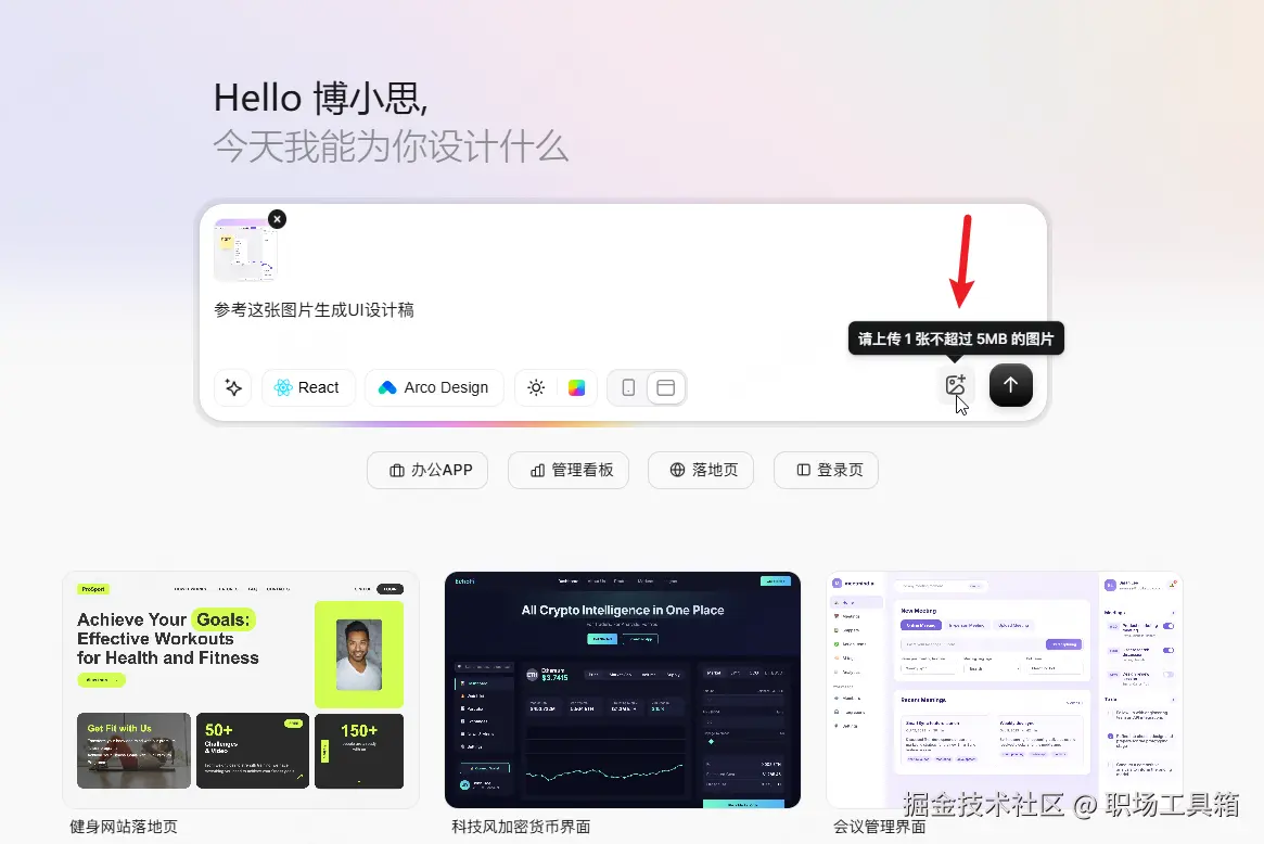 从图片到原型:它不仅是听指令画图,还能读懂我们上传的图片。把参考图扔进去,NLP 算法就能提取出功能架构,反手给你生成一套带侧边栏、面包屑导航和数据表格的完整设计稿,这比盯着空白画布从零搭建要高效得多。