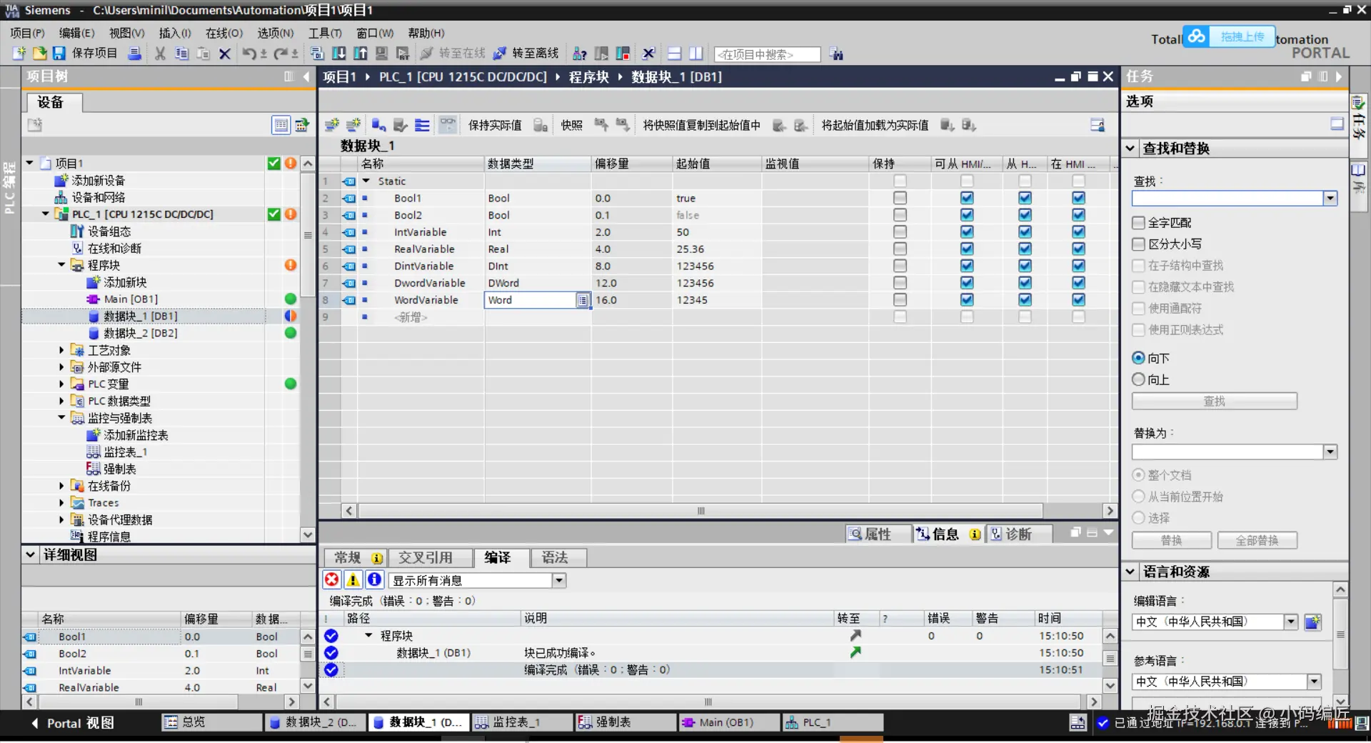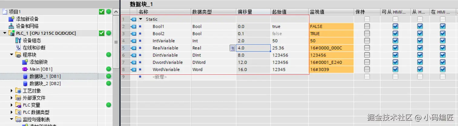 创建一个Db1类,数据类型和变量名跟 TAI Portal 数据块里一一对应,这个很简单!