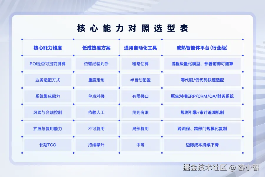 结论非常明确:当智能体从“单点自动化工具”升级为“平台级能力”,ROI才会真正被放大。