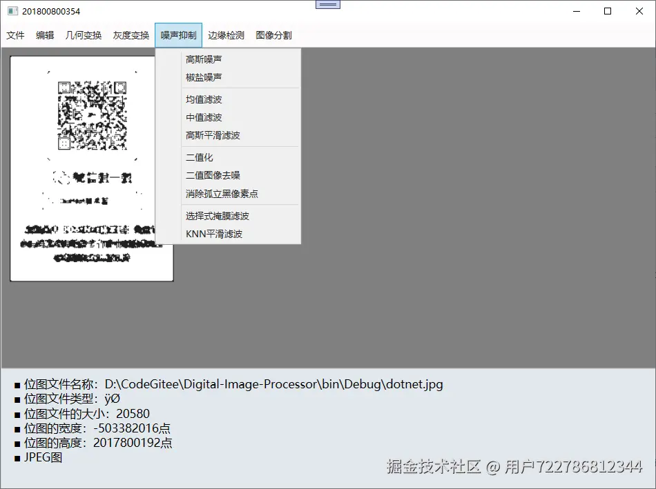 项目是一个基于.NET 平台开发的桌面级数字图像处理工具,在通过图形化界面直观展示多种图像处理算法的效果。