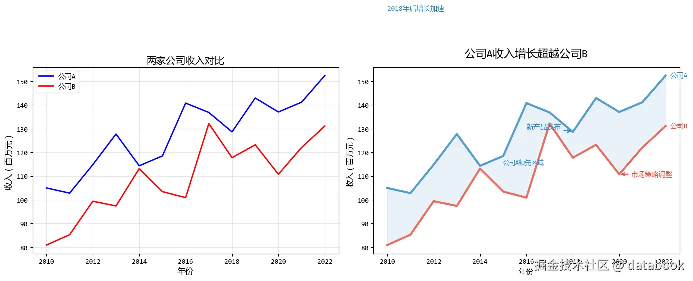- 使用填充区域突出重要差异
