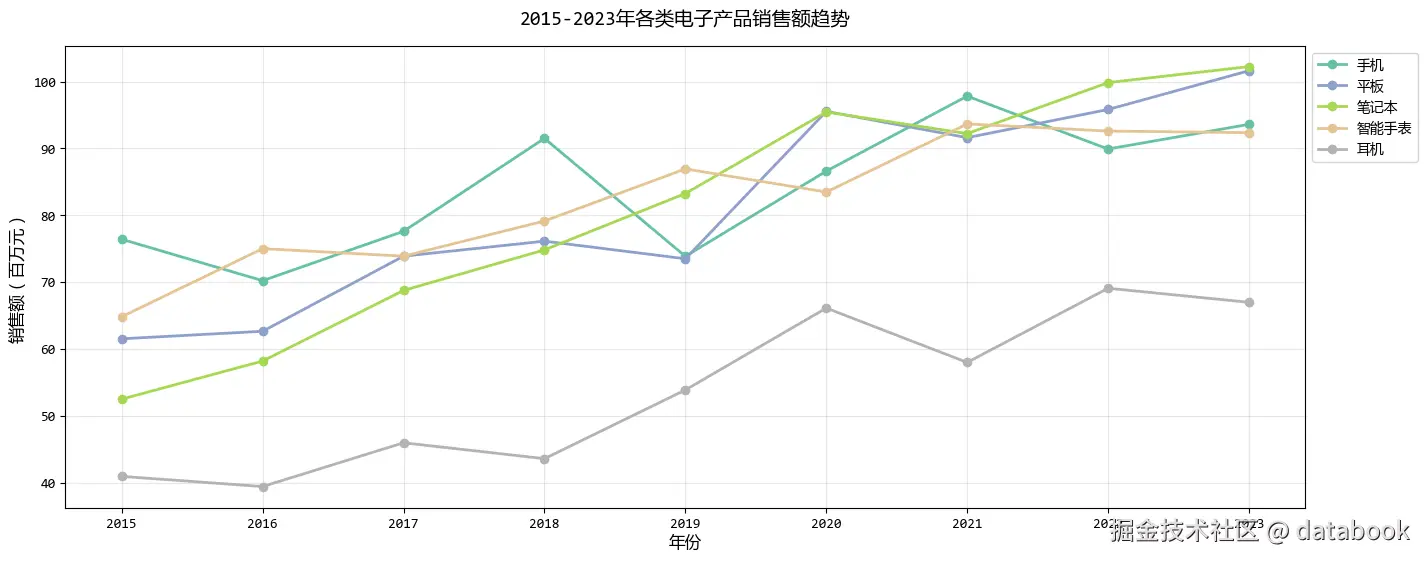 - 每个子图聚焦一个产品,避免线条交错