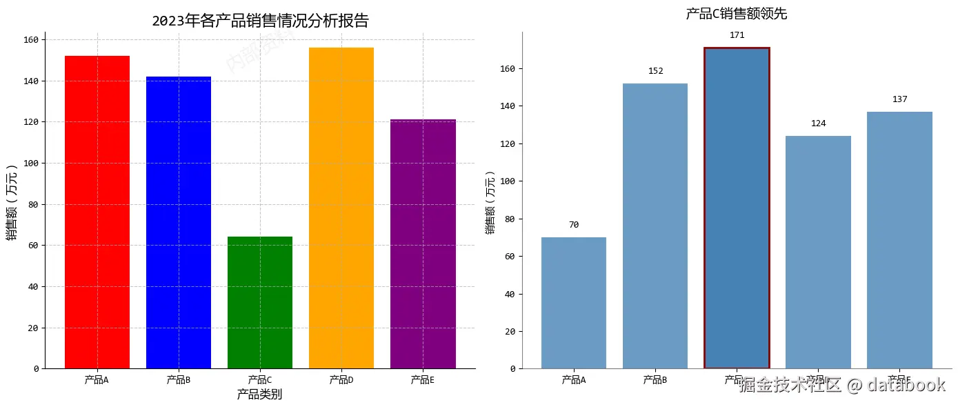 - 直接在柱状图上标注数值,避免视线来回移动