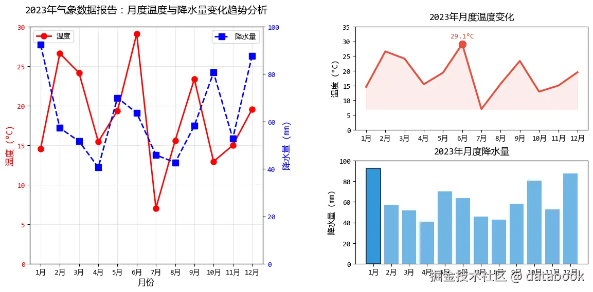 ax1b.plot(months, precipitation, "bs--", linewidth=2, markersize=8, label="降水量")
