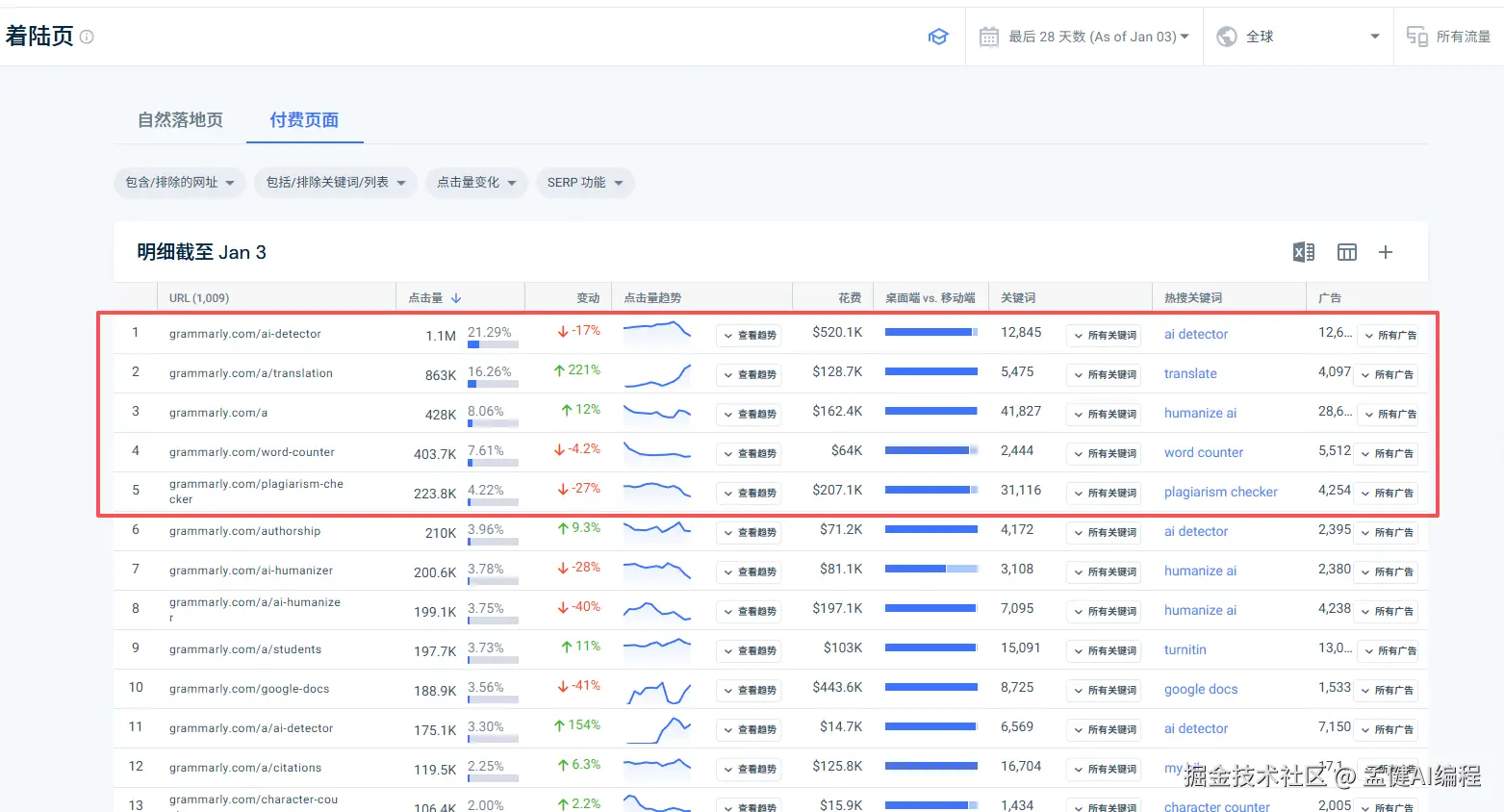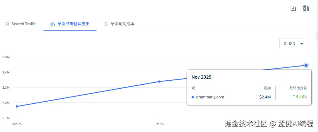 在 SImilarWeb 上可以看到,Grammarly 在这两个词上,也花费了很多钱去买 PPC 曝光。