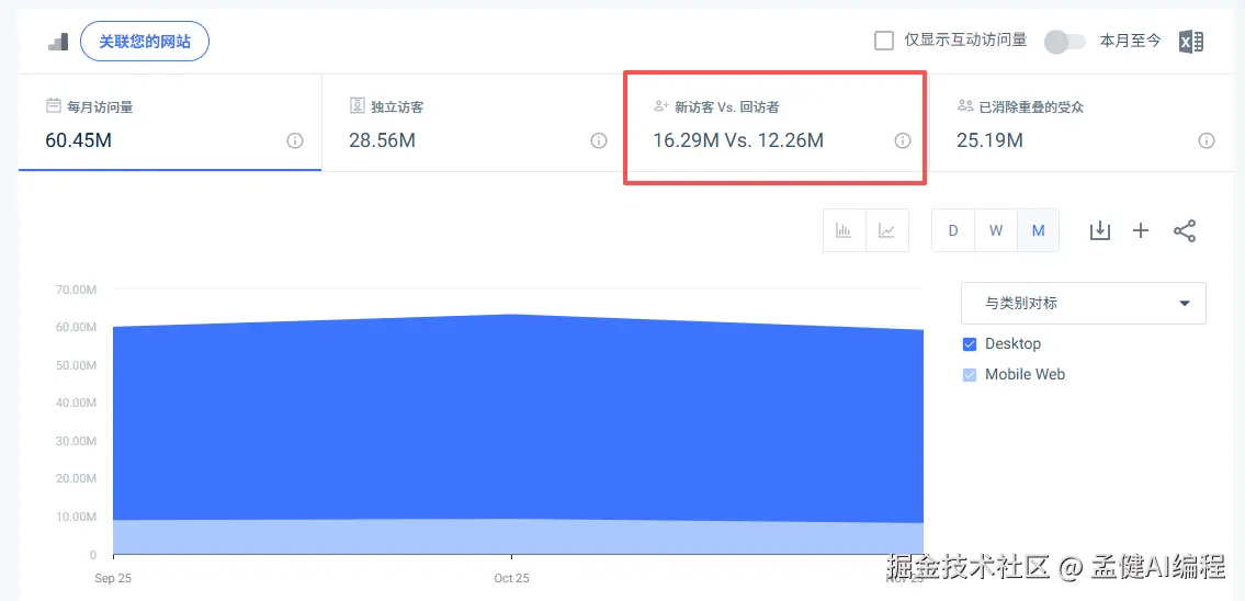 这一点,我们通过 SImilarWeb 上的回访客数量,也可以得到验证,复访的占比非常高。