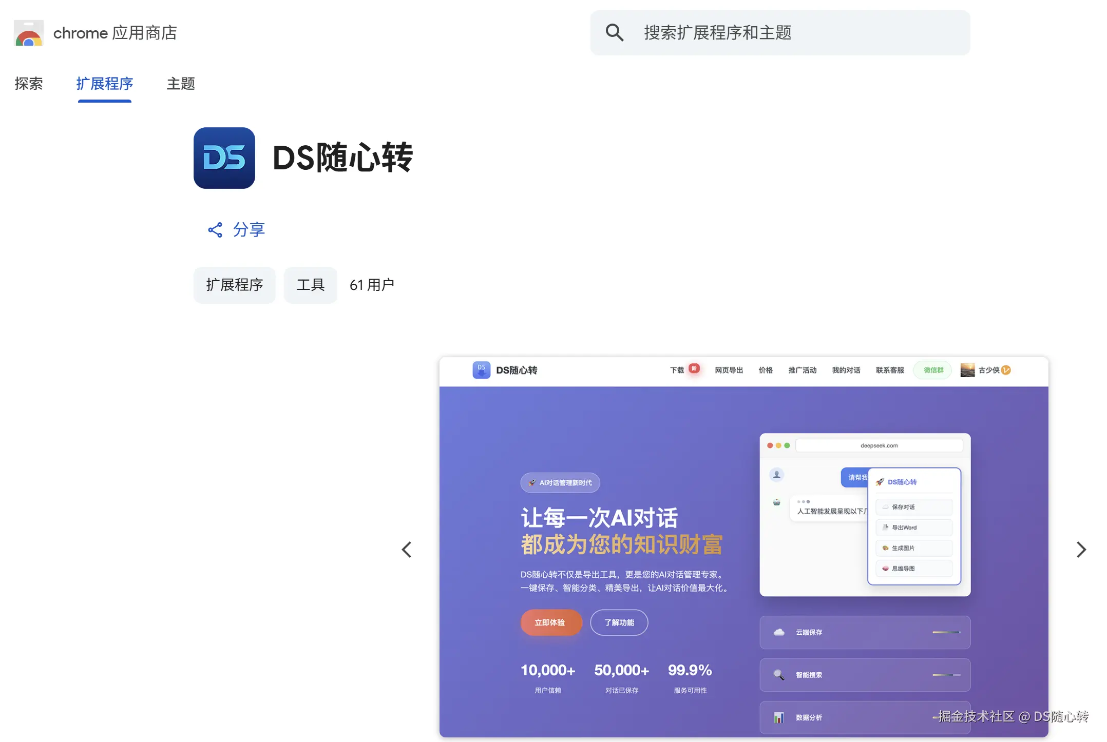 | 1. DS随心转 | 专为DeepSeek/豆包等AI对话设计,一键将对话(含复杂公式)导出为格式完好的Word、PDF等文件,彻底避免复制乱码。 | 需要将豆包中带有公式、代码、表格的完整回答,直接变成可编辑的文档或报告。 | 浏览器扩展(支持Chrome、Edge、360等)。 |