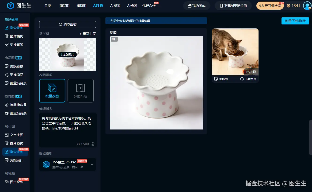 AI指令改图功能完美破解困境,无需懂设计,输入指令即可精准改图,适配全电商场景。下面从实际案例出发,带大家解锁这款降本增效神器。