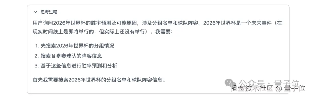 比如它会先梳理自己所需的全部信息,给出一条合理的预测路径:分组情况→阵容信息→胜率预测。