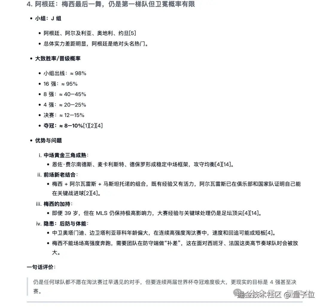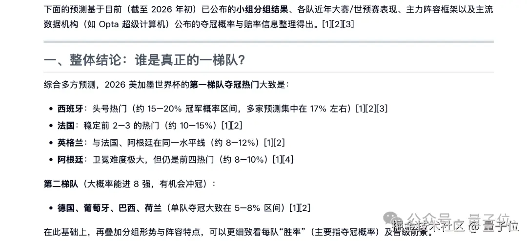 那么再看输出的结果,和模型一般最后放结论不同,MiroThinker 1.5 直接开门见山,先给整体结论,以及详细的概率统计。(用户体验感 UP!)