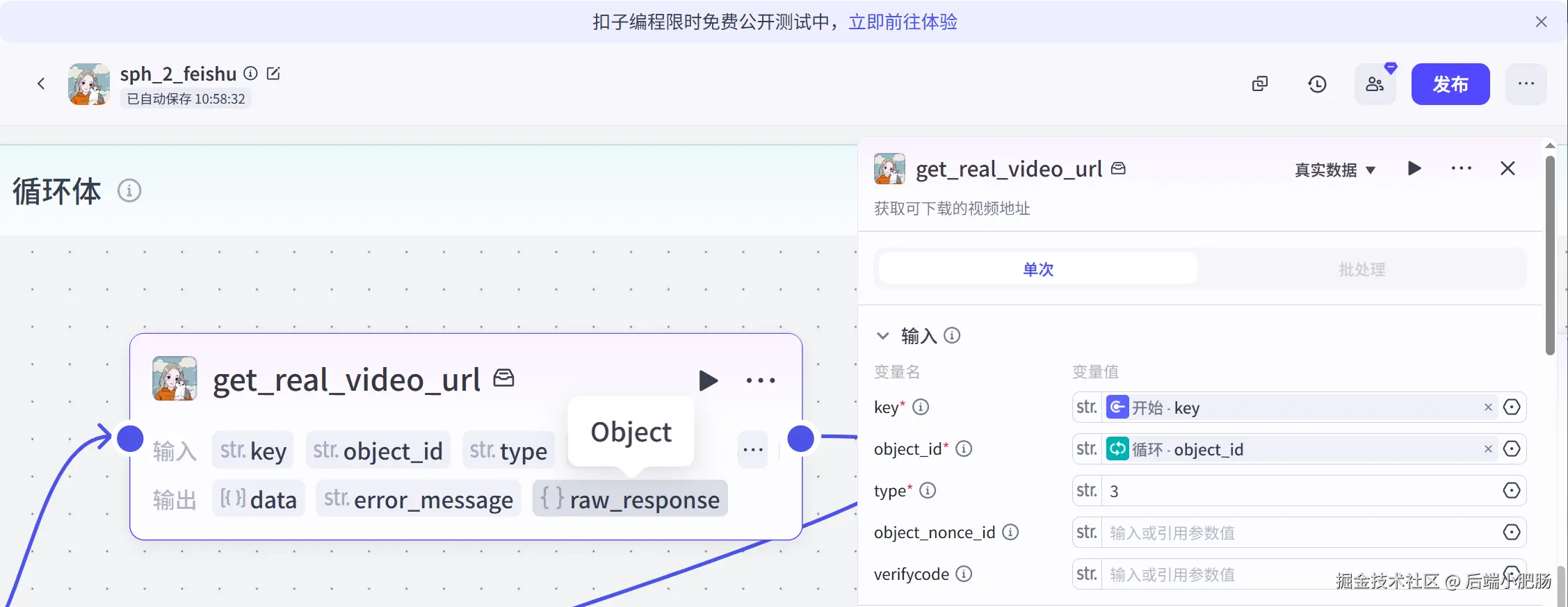 做自媒体的小伙伴都知道每个平台的运营规则是不一样的,同样的视频素材每个平台的文案风格,标题都要不一样才能发挥出它的价值。该怎么做? 最快的方法就是摸着石头过河——聚合大佬的经验,分析对标账号的爆款逻辑。我之前用coze做了一个聚合小红书和抖音信息的工作流。