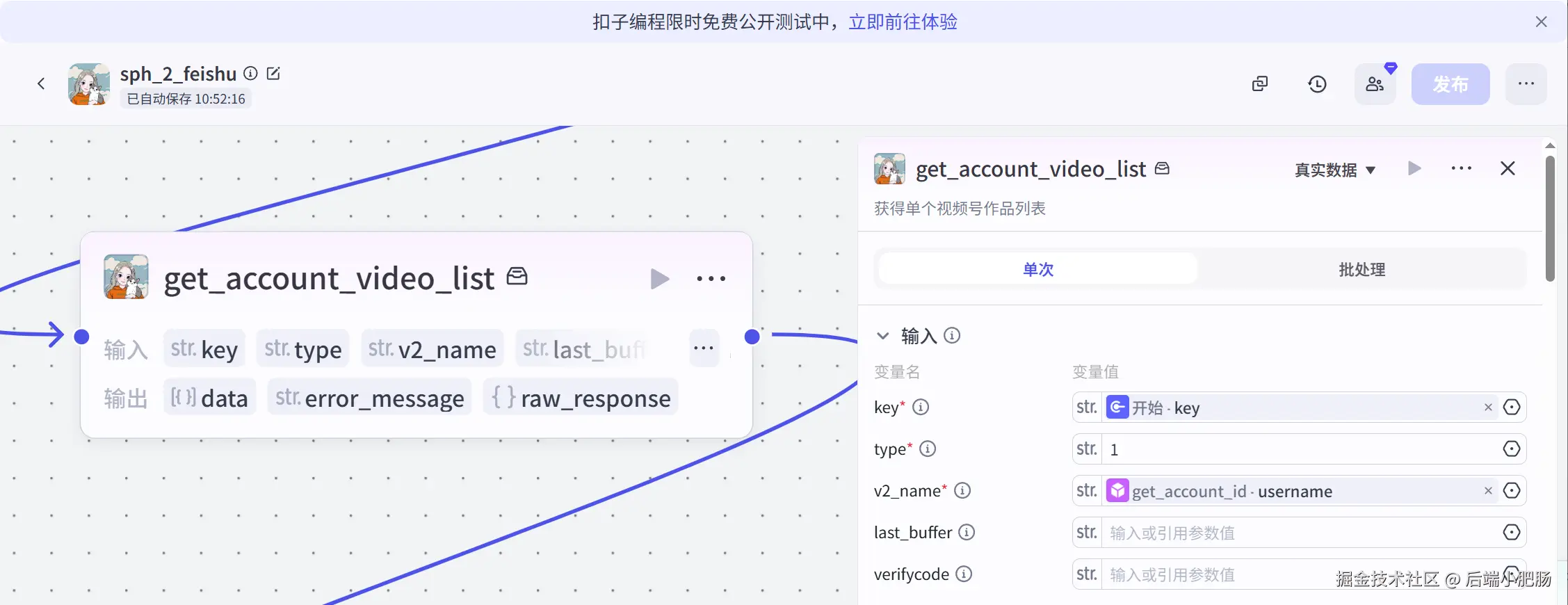 因为之前工作流用的都是别人的插件,后来插件出问题了现在工作流用不了了,于是我决定自己做一套聚合工作流,涵盖视频号,抖音等平台。今天先讲视频号的,工作流的使用方法很简单,只需要在开始节点输入必要参数点击运行。