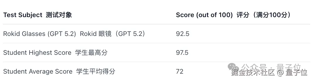 结果您猜怎么着?这款基于 Rokid Glasses 开发、搭载 GPT-5.2 模型的 AI 眼镜,在本次期末考试中拿下 92.5 分,成绩超过了 95% 的学生。