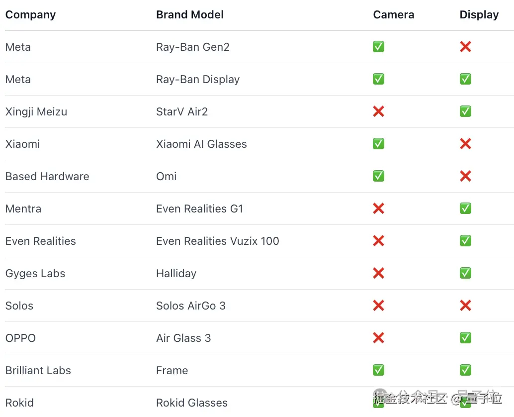 第一轮筛选后,团队发现真正同时具备内置摄像头和集成显示屏的产品其实并不多,进入候选范围的主要只有 Meta Ray-Ban、Frame,以及乐奇 Rokid。