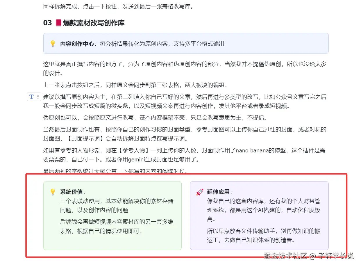 所以最近飞书《AI时代超级个体》知识库的美化工作我就全交给她了,本来还想着找个兼职的帮我排版一下。现在钱又省了,活儿干的还漂亮,换做哪个老板都会喜欢这样的助手吧。