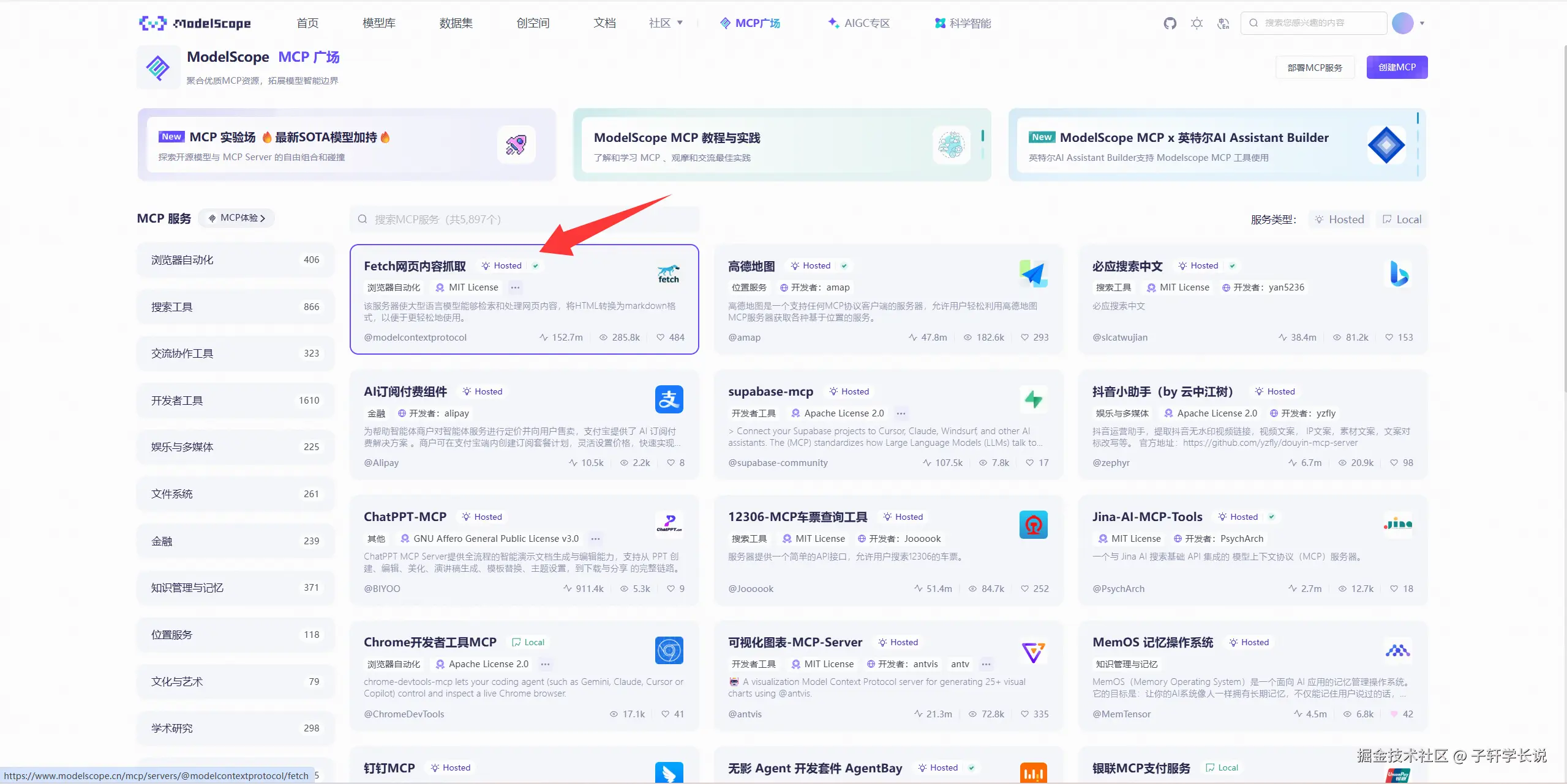 modelscope官网网址:www.modelscope.cn/mcp