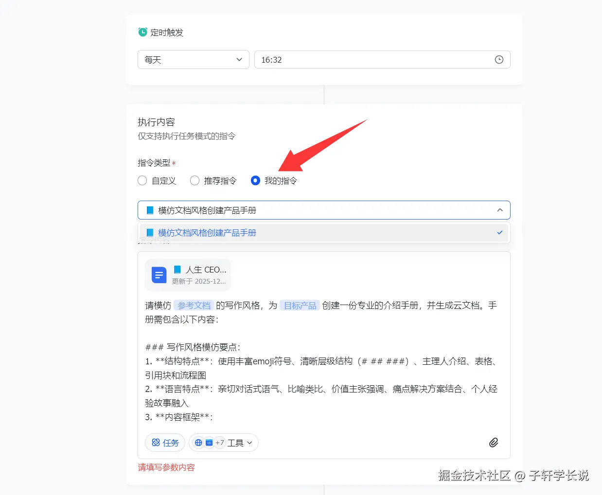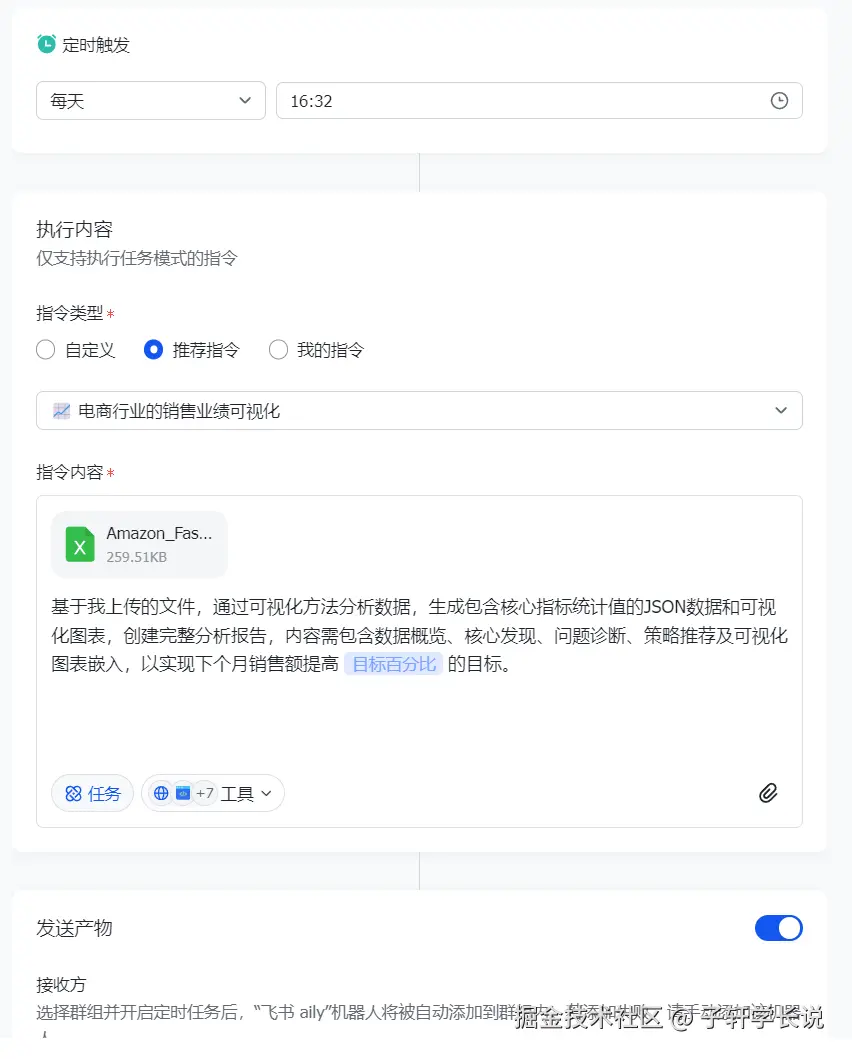 然后回到定时任务,设定具体的重复方式,执行时间,然后就可以每天等着AI自动帮你执行任务了。这感觉不就像雇了个超自律的"牛马员工"?