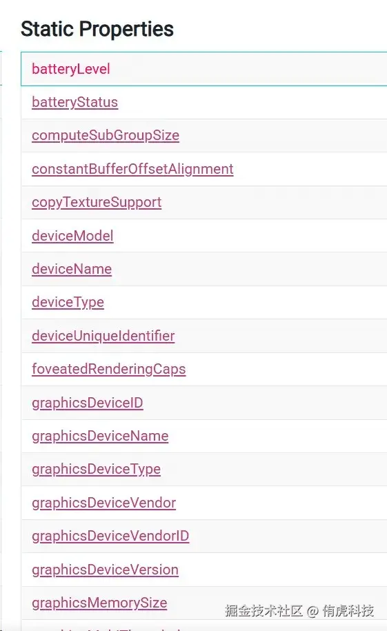 一般用其中deviceType、deviceName去找对应的硬件档次划分;或者直接graphicsDeviceName给到的GPU型号进行画质分级。