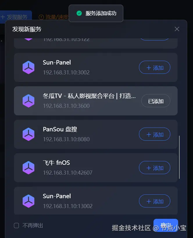 域名生成一键完成 最让我惊喜的是生成专属域名的过程。只需点击添加按钮,系统就自动完成了服务添加和域名生成,整个过程不需要任何技术背景就能完成。