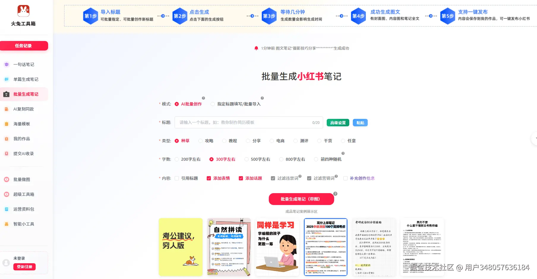 总结一下,新手做小红书不用慌,用好火兔工具箱+Canva的组合,就能大幅提升内容创作效率,轻松实现日更。核心就是借助AI工具解决文案难题,再用设计工具批量出图,把更多精力放在赛道定位和内容优化上。