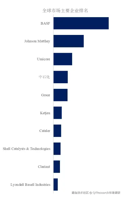 根据QYResearch头部企业研究中心调研,全球范围内催化剂生产商主要包括BASF、Johnson Matthey、Umicore、中石化、Grace、Ketjen、Cataler、Shell Catalysts & Technologies、Clariant、Lyondell Basell Industries等。2025年,全球前十强厂商占有大约62.0%的市场份额。